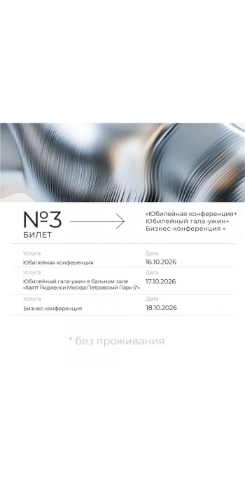 Билет №3 "Конференция (16/10,18/10) + Банкет 17/10" без проживания